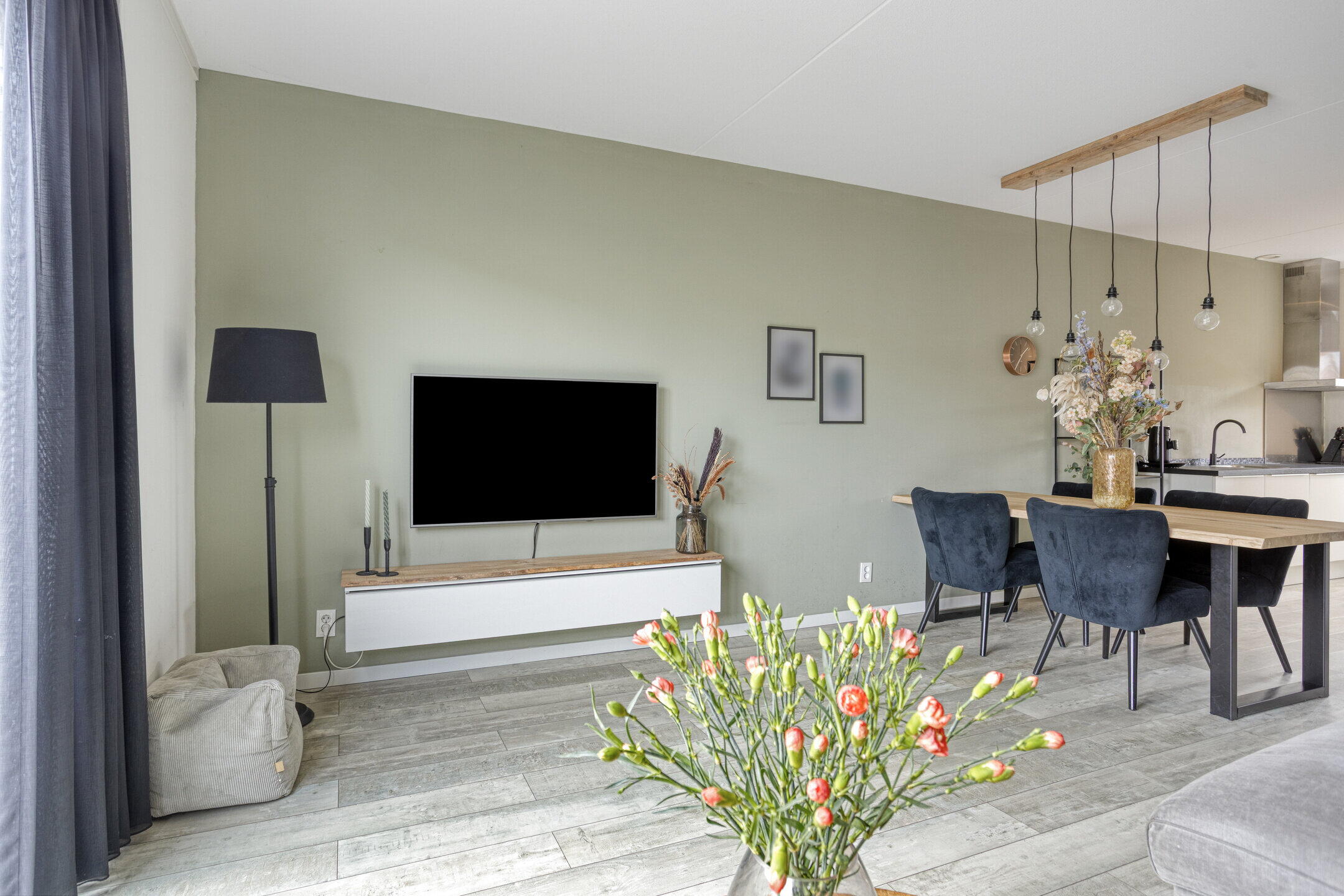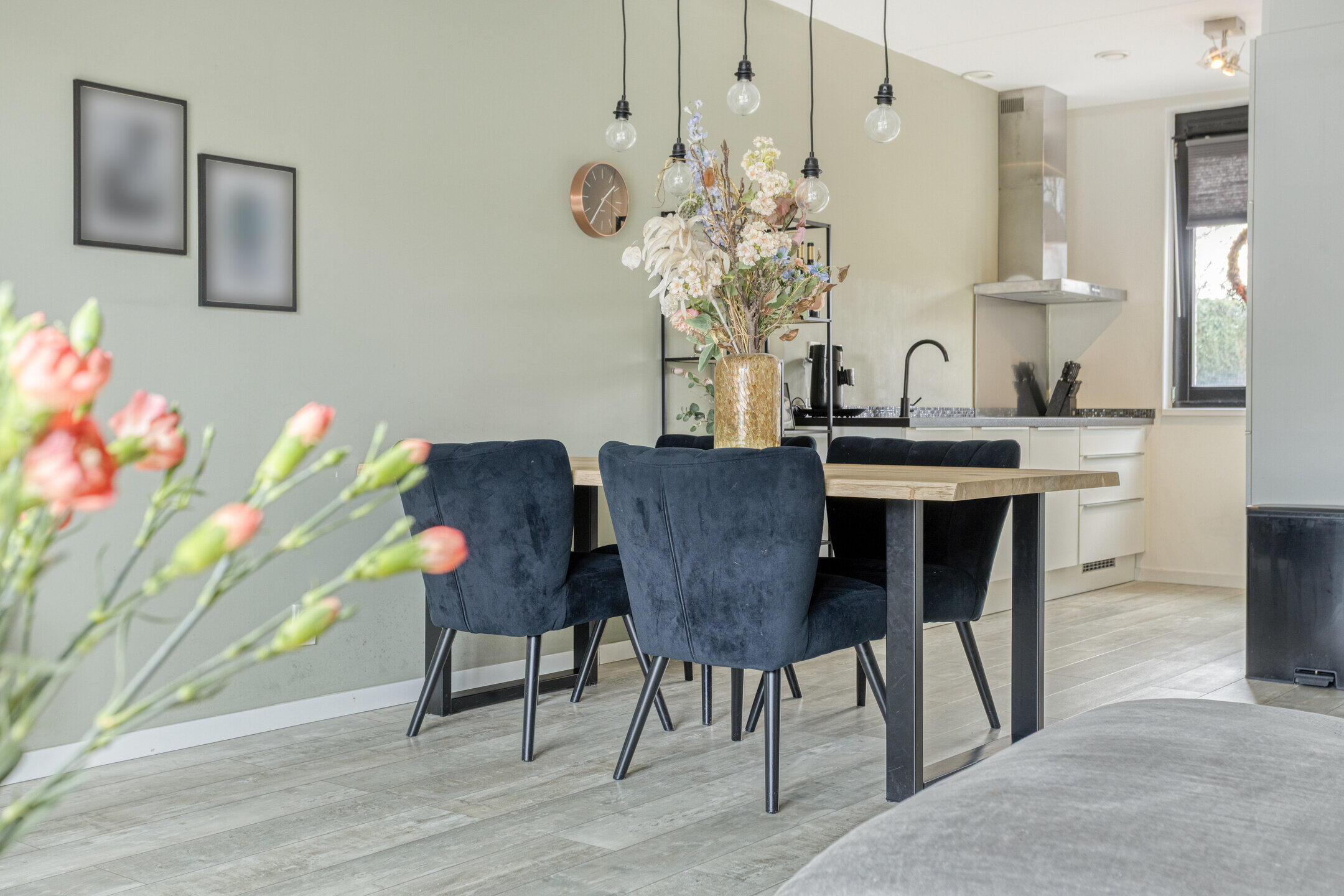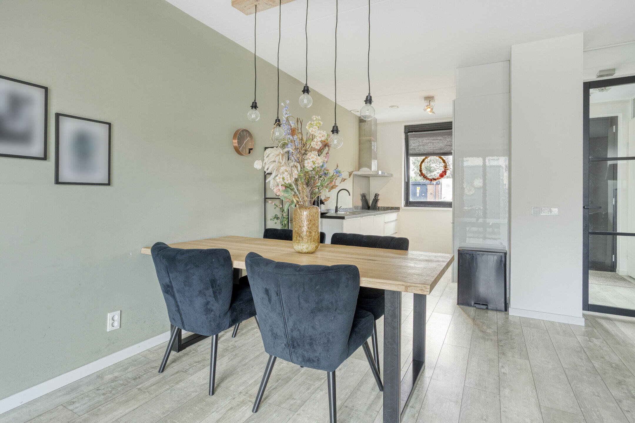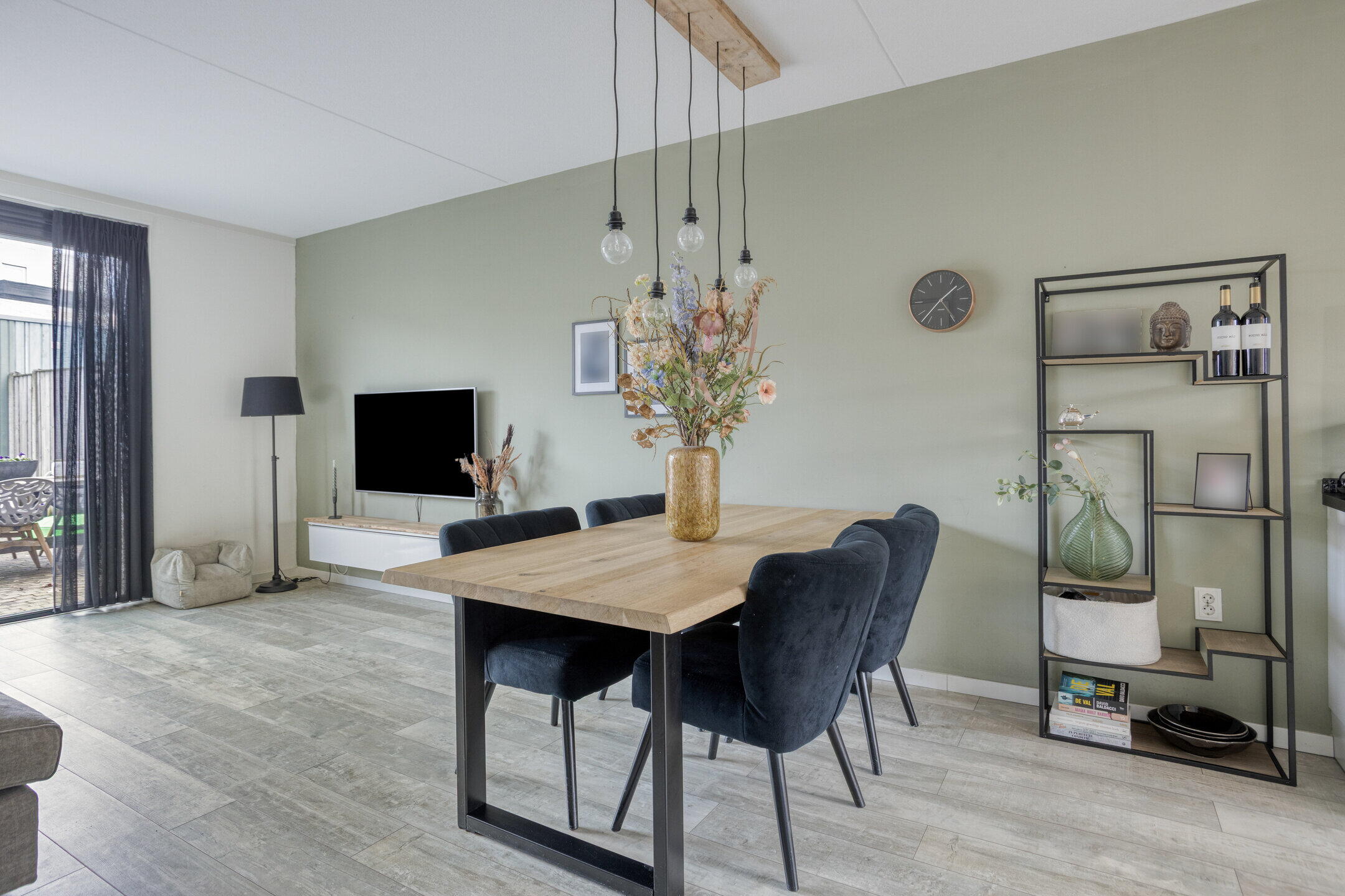 De woonkamer is heerlijk licht en biedt volop ruimte voor een comfortabele zithoek en een gezellige eettafel. Daarnaast is er een praktische opbergkast aanwezig en heb je direct toegang tot de tuin — ideaal voor binnen-buiten leven. Aan de voorzijde van de woning bevindt zich de moderne keuken, voorzien van diverse inbouwapparatuur. Een fijne plek om te koken terwijl je uitkijkt over de straat.